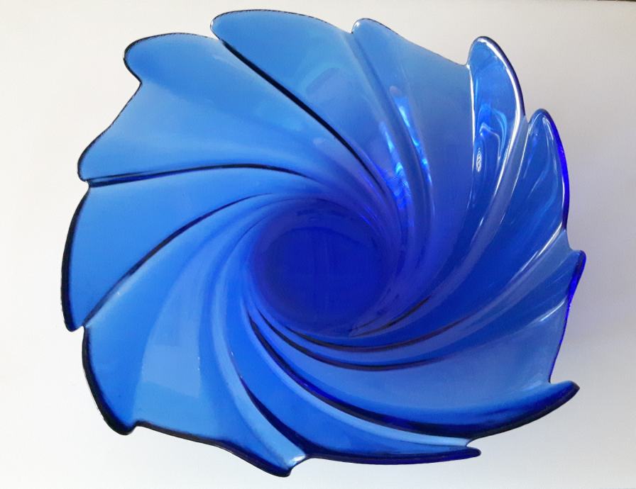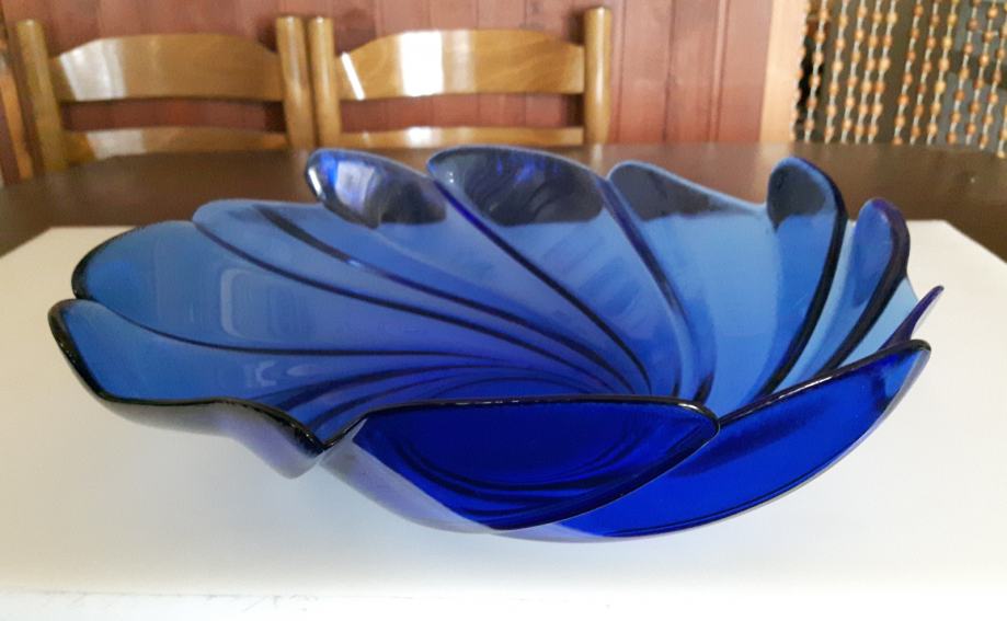 Plava staklena zdjela, promjera cca 28 cm i visine 8 cm
