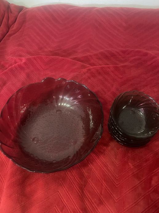 Staklena zdjela promjer 27 cm, i 6 malih zdjelica