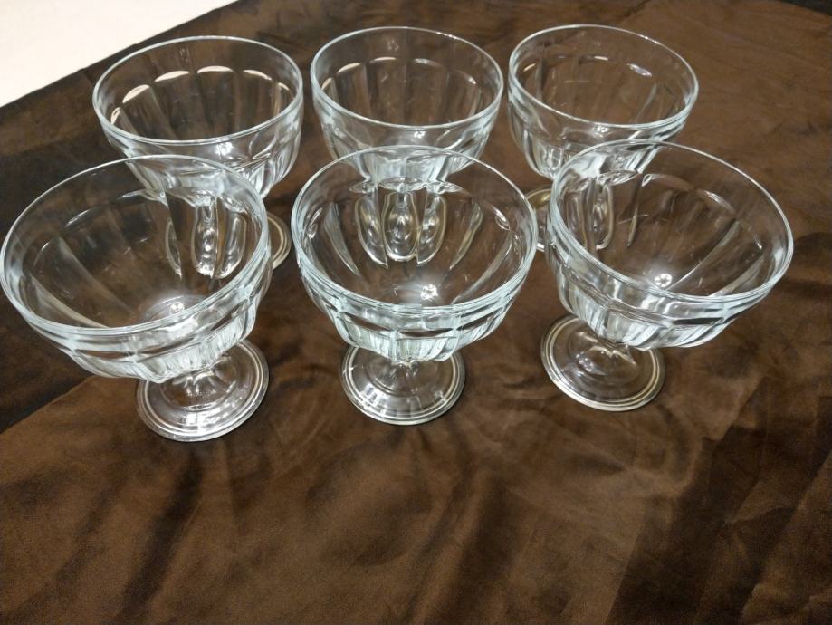 Staklene zdjelice za sladoled i voće na stalku,