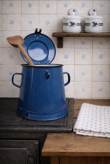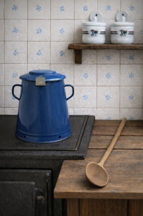 Lokacija Zagreb.Prodajem starinsku emajliranu posudu za mast visine 23 cm.