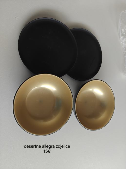 Prodajem Tupperware Allegra zdjelice, set od dvije zdjelice s poklopcima. Zdjelice su zlatne boje iznutra s crnim poklopcima, elegantnog dizajna. Radi se o desertnim zdjelicama koje dolaze u paru.