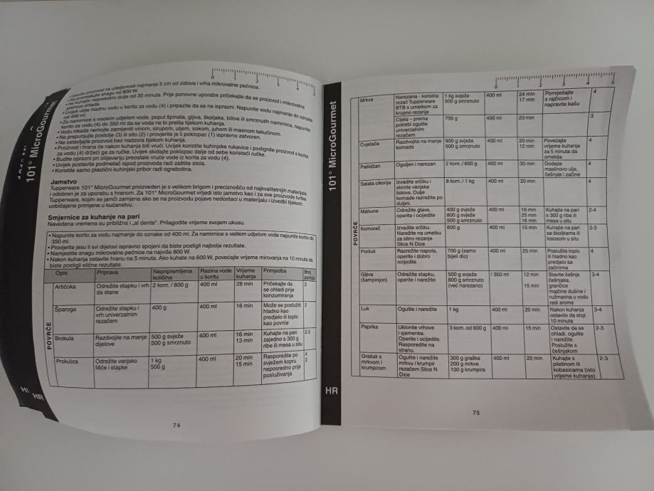 Tupperware MicroGourmet je praktičan proizvod, u kojem obroke pripremate brzo i jednostavno. MicroGourmet je predviđen za kuhanje na pari u mikrovalnoj, u potpunosti je siguran proizvod koji namirnice čuva od bilo kakvih mikrovalova, a u njima ostaju svi vitamini i minerali koji se inače gube kod pripremanja hrane na klasičan način pri visokim temperaturama.