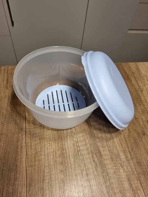 Na dnu posude se nalazi rešetka na kojoj se cijedi voće i povrće, ali može biti i za odleđivanje mesa, također može biti i posuda za posluživanje; ima prozirni dio pa se može vidjeti sadržaj posude.