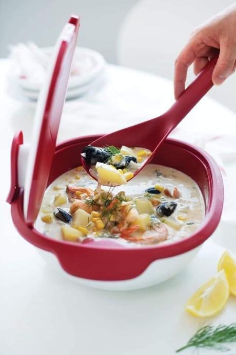 Poklopac se može zakvačiti sa ručkom na posudu.