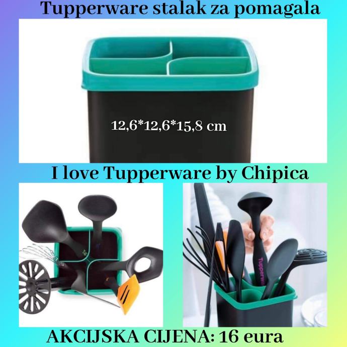 Stalak za pomagala je crne boje sa tamno zelenim umetkom. Zeleni umetak ima pregrade kako bi se pomagala složila što urednije,no međutim on se može i skinuti.