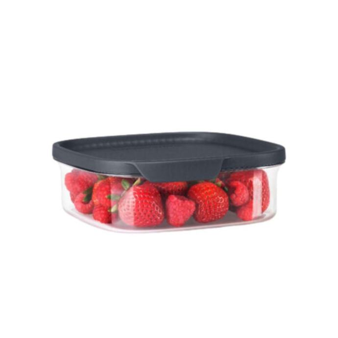 Prodajem novu Tupperware Ultra Clear posudu zapremine 825 ml. Posuda je prozirnog tijela pa je sadržaj uvijek vidljiv, a dolazi s crnim poklopcem koji čvrsto prijanja. Kvadratičnog je oblika s blago zaobljenim rubovima, kompaktna i praktična za svakodnevno korištenje u kuhinji ili na putu.