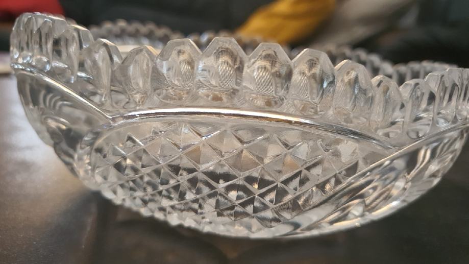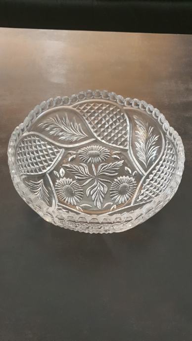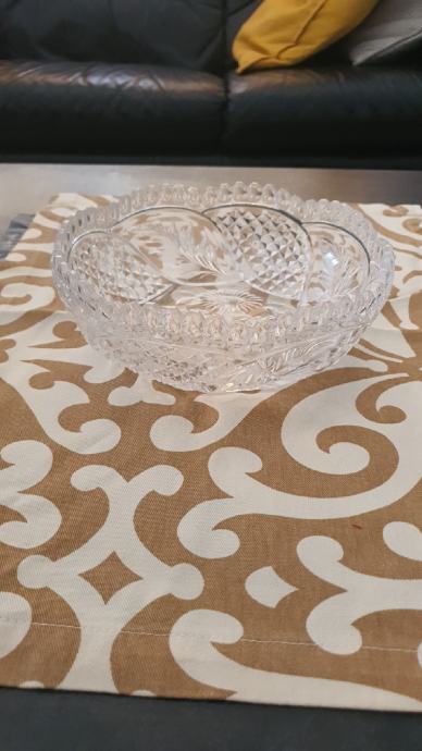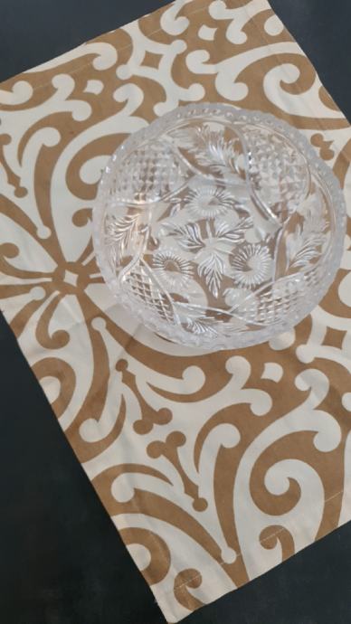 Prodajem ukrasnu zdjelu od brušenog stakla, promjer zdjele 18 cm, cvjetnog motiva, a uz zdjelu ide i ukrasni milje ( dim:46 × 34 cm), s fotografije.