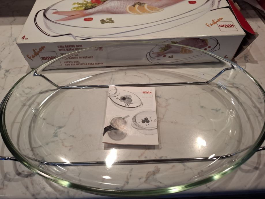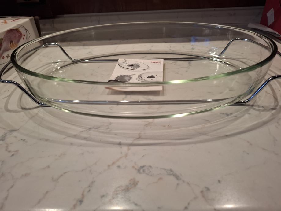 Prodajem potpuno novu vatrostalnu ovalnu posudu, zapremine 4 l, sa metalnim držačem