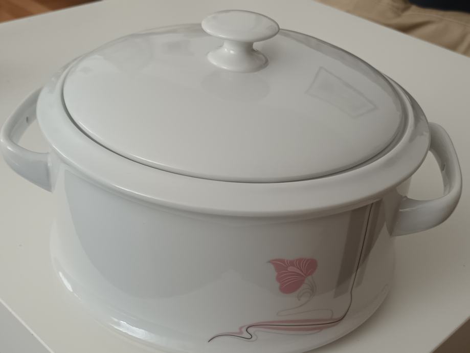 Promjer 21,5 cm, visina 11 cm ( bez poklopca).