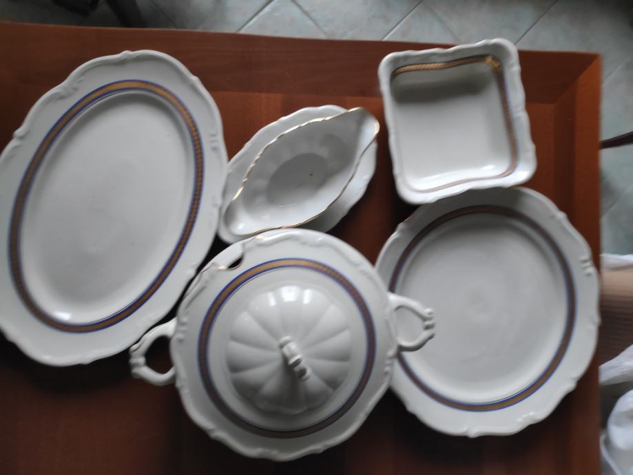 Bolesławiec, Made in Poland, gdje slovo B označava autentičnost: kobaltna zdjela za juhu s poklopcem, posuda za sos i jedna za prilog i veliki ovalni i okrugli tanjur za posluživanje. Neoštećeno!