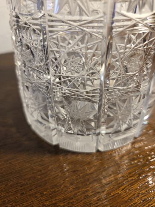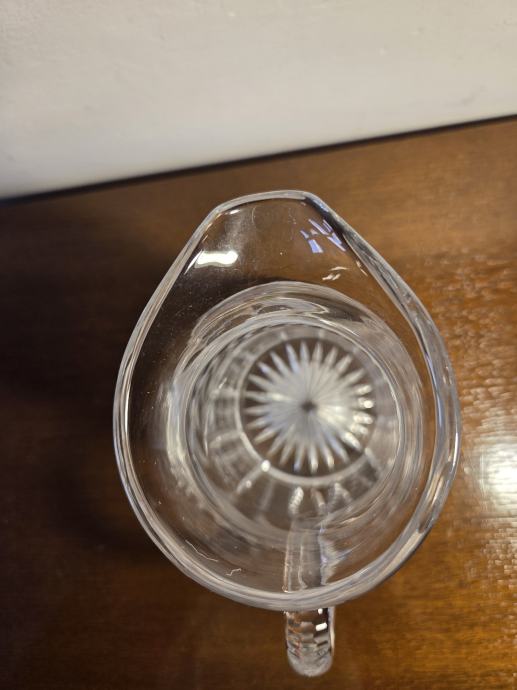 Prekrasna posuda, bokal ili vrć za vodu, sok, vino i slićno. Posebno lijepo brušeni obod u obliku kristala. Oblik je ergonomski tako da je lagano prihvatit u ruke i stabilnog stajanja. Potpuno nov bez uporabe.