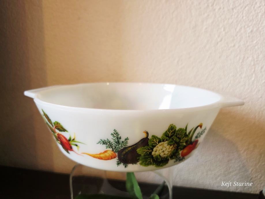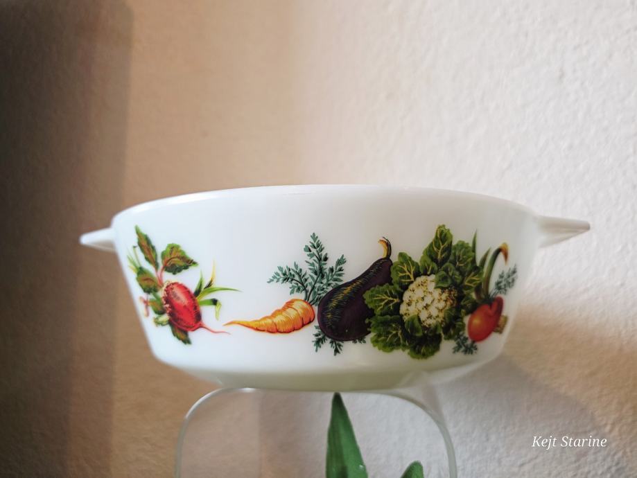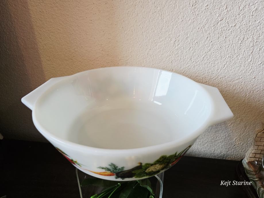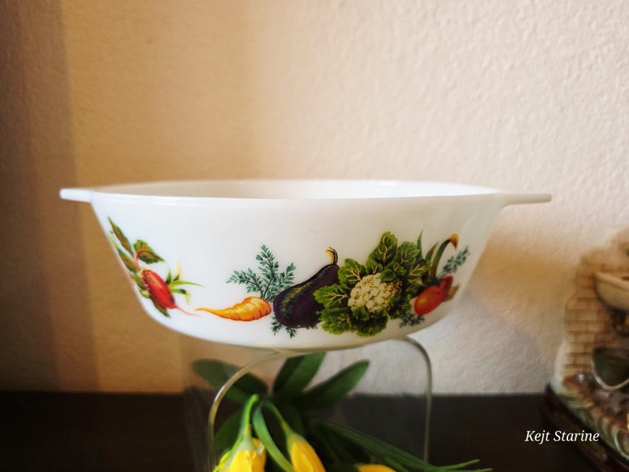 Vintage Pyrex posuda za pečenje (casserole dish) marke JAJ s uzorkom pod nazivom "Tuscany" ili "Market Garden".