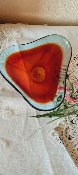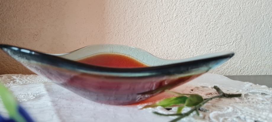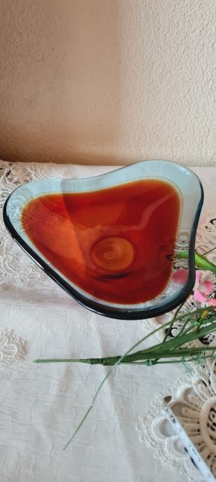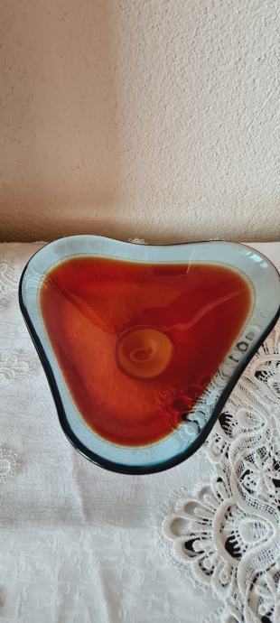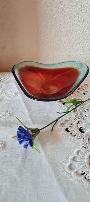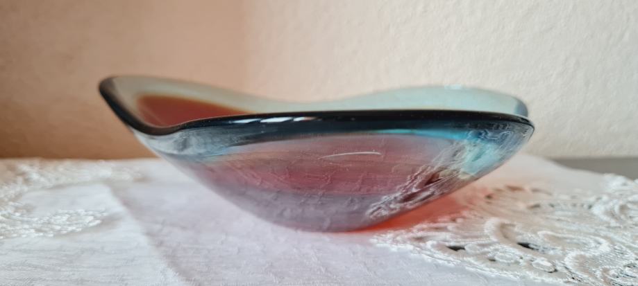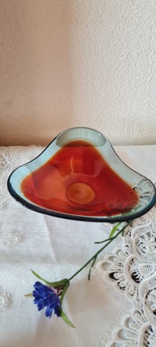Zdjela, višebojno staklo. Vintage Red Swedish Art Glass Bowl Sölvesborg Glasbruk iz 70-ih godina prošlog stoljeća. U savršenom stanju.