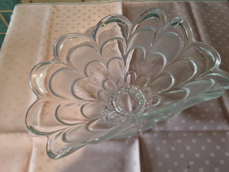 Nova, ukrašena, staklena posuda, zdjela.