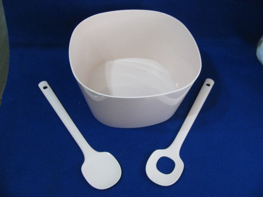 Nekorištena zdjela sa dvije žlice za mješanje.