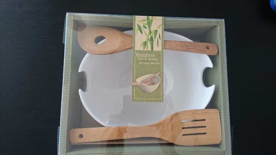 Prodajem NOVU zdjelu za saltu +bambus pribor,, u original kutiji. Moguća dostava u zapadnom dijelu zg ili tiskom ili poštom na adresu
