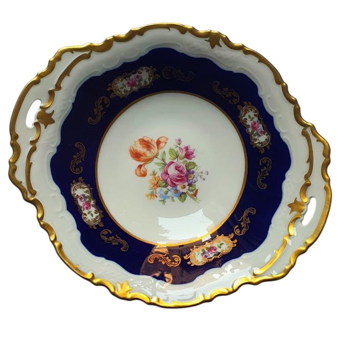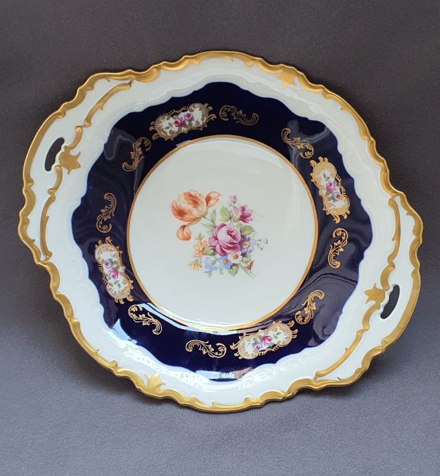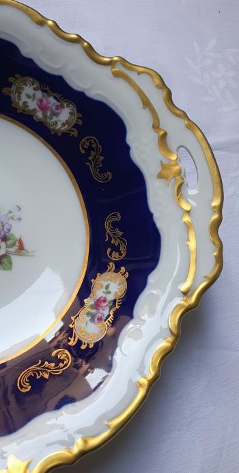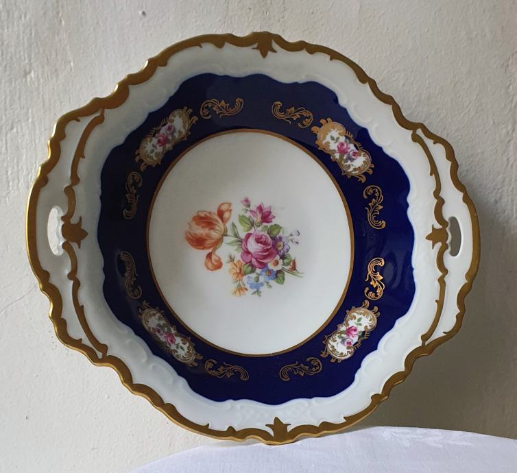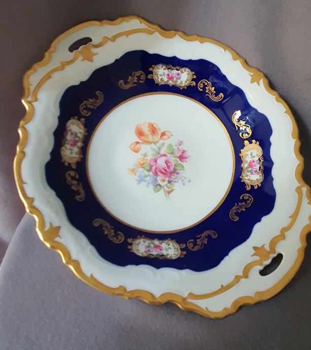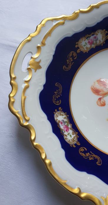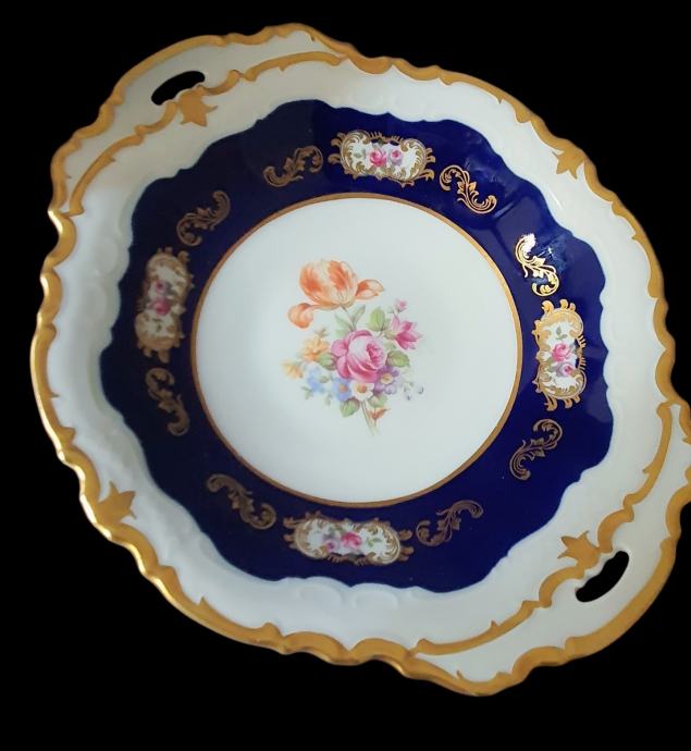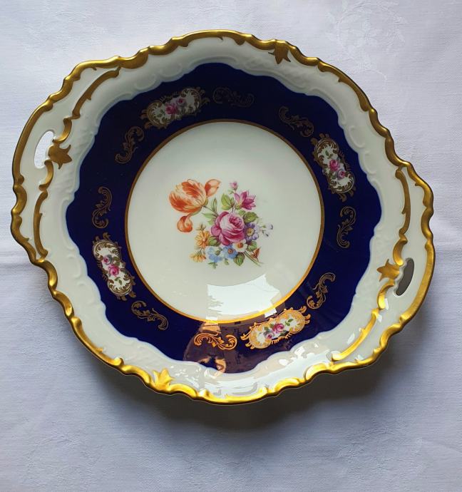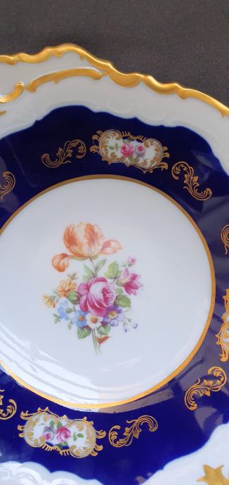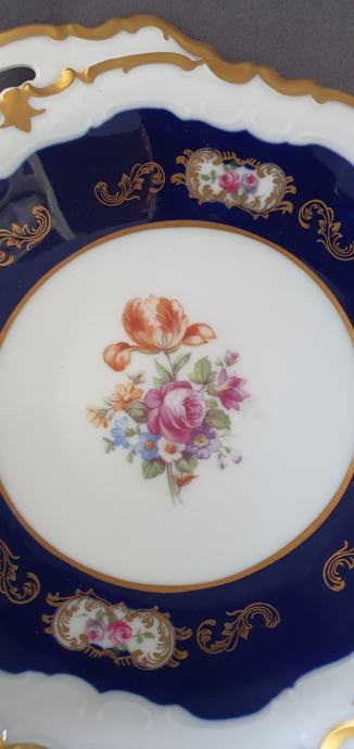 Krasan kobaltna udjela ukrasena cvjetnim motivom ruža i bogate pozlate u kombinavija sa plavim royal kobaltom u perfektnom stanju bez znakova koristena