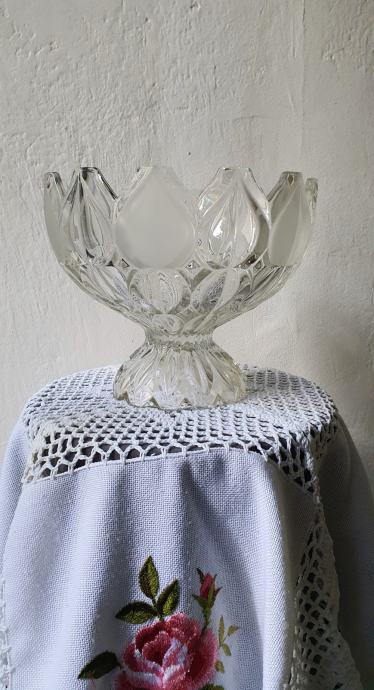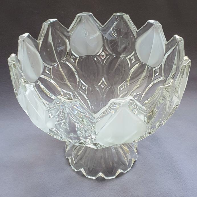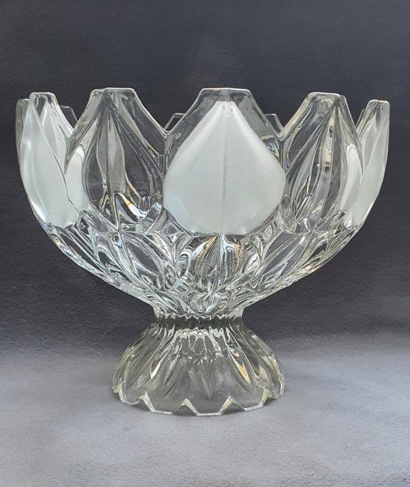 Velika retro zdjela za voće iz 1970.staklo Bohemia Ceska u komninaciji sa mat izuzetno teska 2300 grama u perfektnom stanju vrlo dekorativna