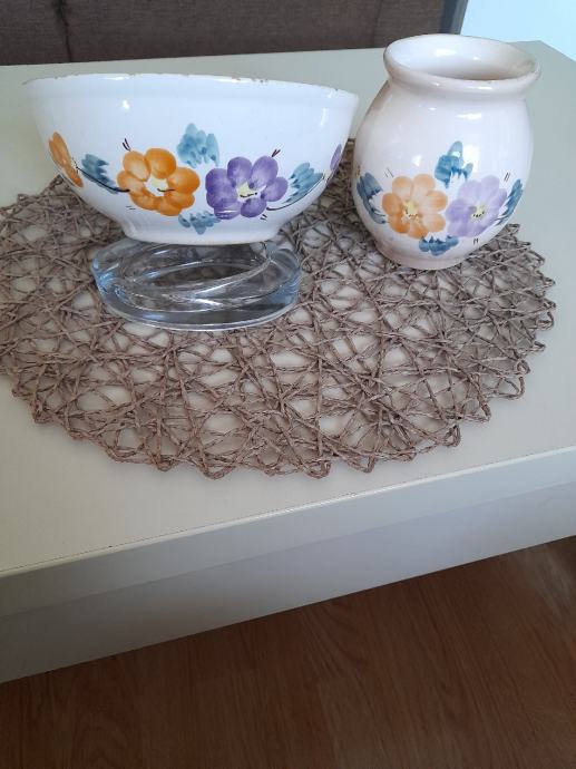 Prodajem 2 zdjele, stare su 40 godina, lijep detalj za etno kuce ili vikendice, na rubu ove niske vide se tragovi starosti, promjer zdjele je 19 cm a ovog cupa je 11 cm, cijena je 10 € plus postarina ako saljem, inf na tel 035 260 202