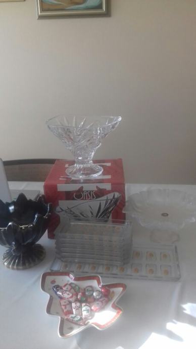 Zdjela nova kristal ima i orginal ambalažu 30 € .Zdjela za voće ili kolače, staro oko 50 god. 49 €. .Set za kolače staklo 15 €.