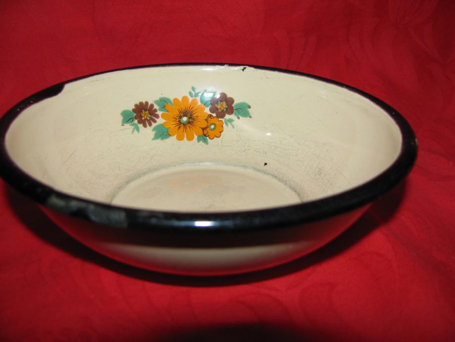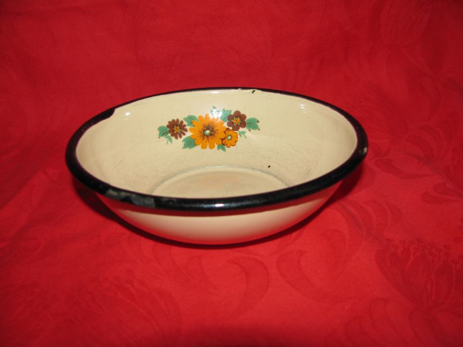 Zdjelica 12MP, emajl krem boje-ŽUTI cvijet. SAND