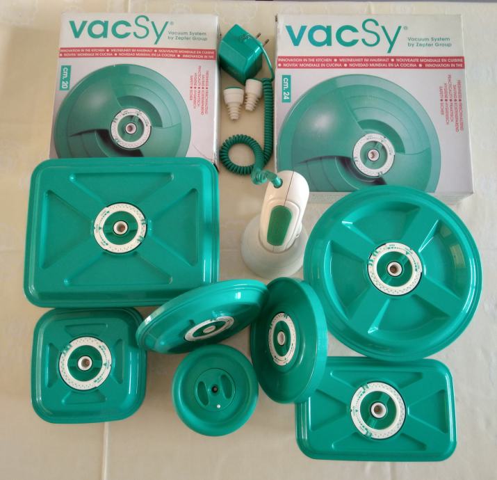Prodajem veliki Zepter Vacsy vakuum komplet i dva dodatna poklopca za vakumiranje lonaca svih veličina.