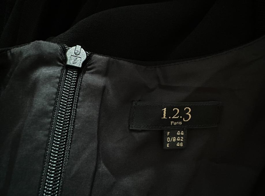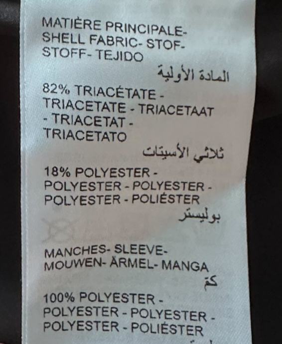 Mjere: dužina 127 cm, dužina gornjeg dijela 45 cm, ramena 43 cm, prsa 56 cm, struk 47 cm, rukav 3/4 47/28 cm.