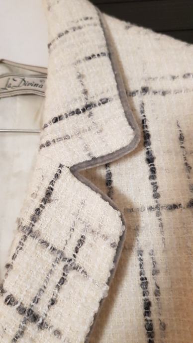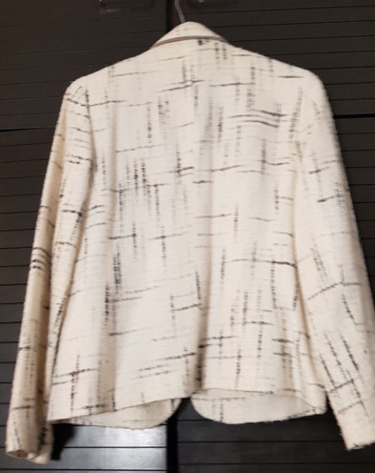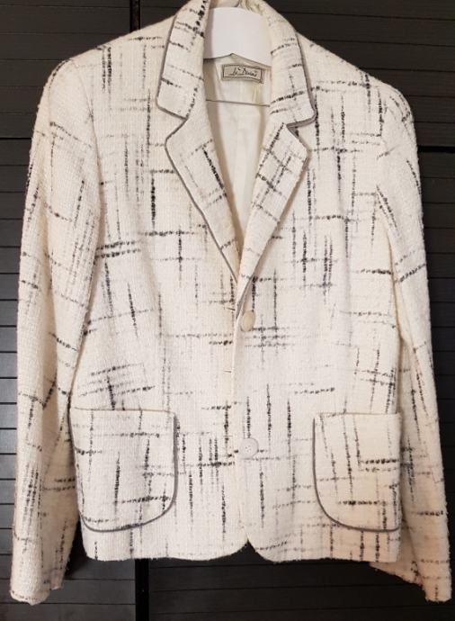 Jako lijepi bijeli sako prošarani sivim nitima od tvida. Klasični kroj malo strukiran. Čuvan za posebne prilike, možda jednom obučen, a onda je postao mali