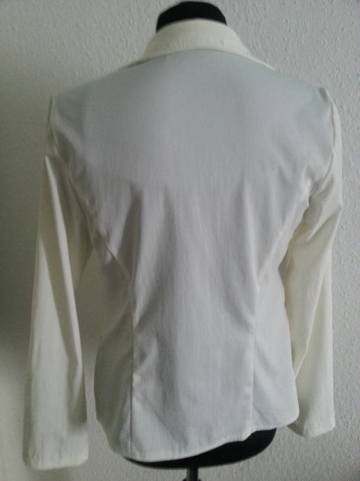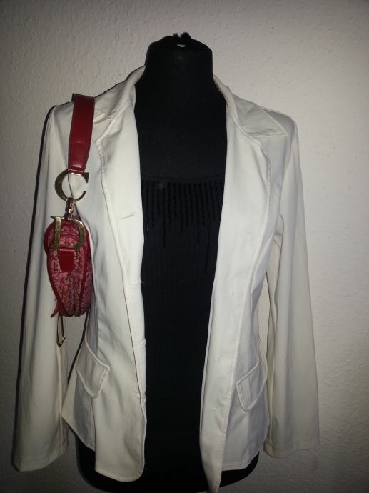Bijeli sako tanji pa idealan za proljeće/ljeto, može se prati u perilici-ne zahtijeva kemijsko čišćenje, strukiran, odgovara 36/38.