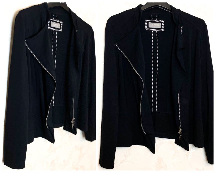 Mjere: dužina 58 cm, ramena 43 cm, prsa 53 cm, struk 48 cm, rukav 66/44 cm.