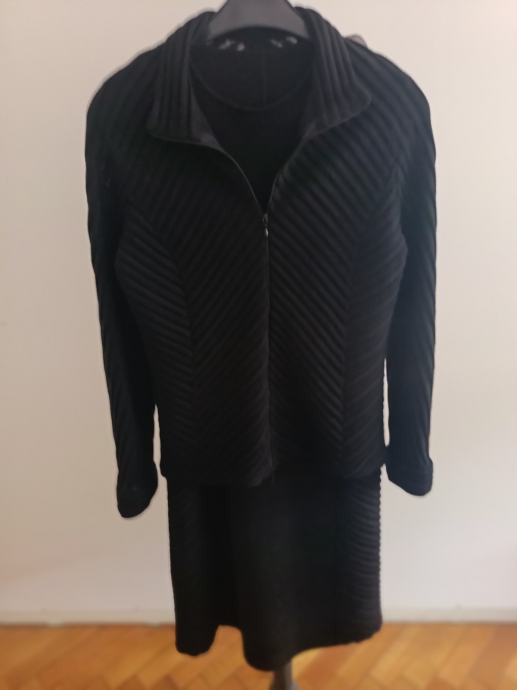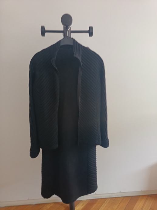 Crni casual komplet, midi haljina i vesta. Idealno za prijelazna vremenska razdoblja.
