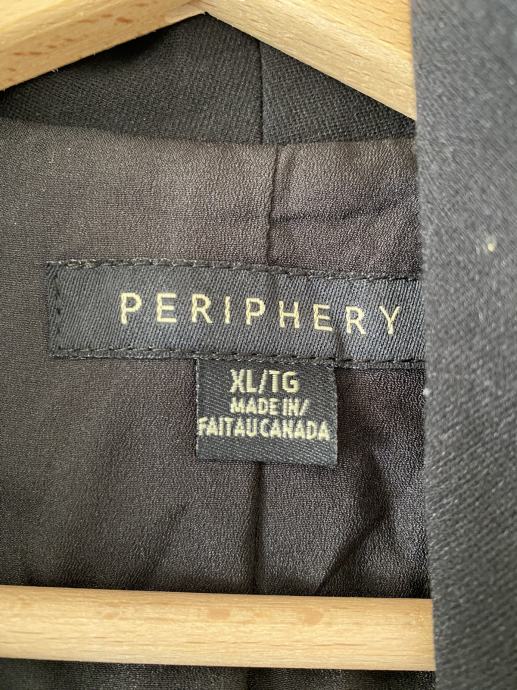 Moderan, mekan, ugodan za nošenje, podstavljen, fantastične izrade pametnog kroja, s finim akcent detaljima, mogućnost nošenja na nekoliko načina zbog kragne - rezultat je tima mladih urbanih dizajnera poznatog brenda kanadske modne kuće, koja ima odgovore za sve zahtjevne mušterije. Kvaliteta je njihov odgovor. PERIPHERY -)