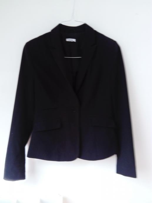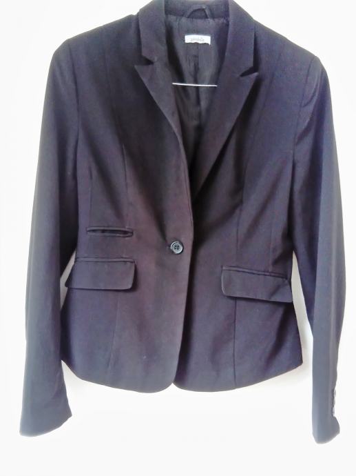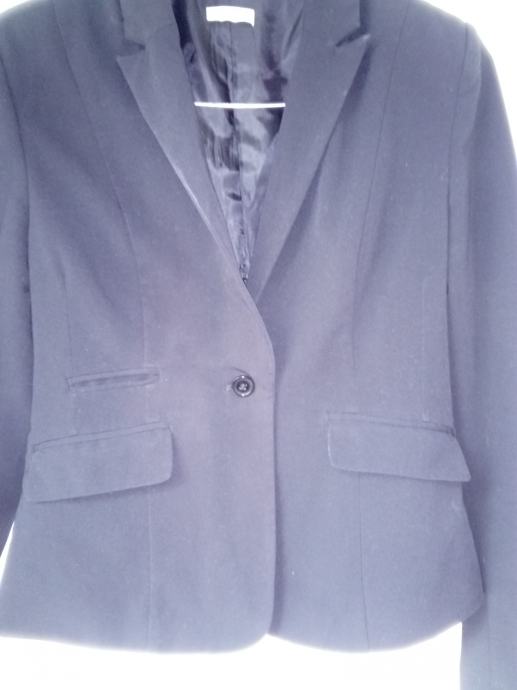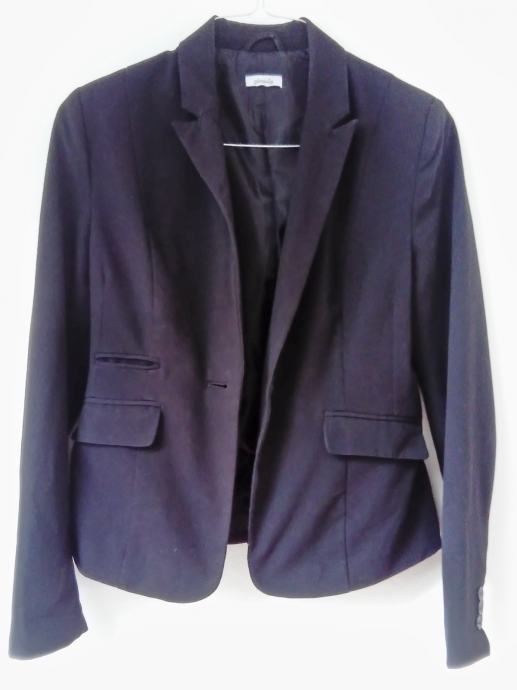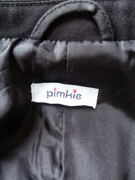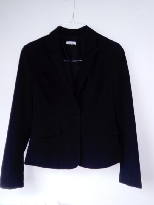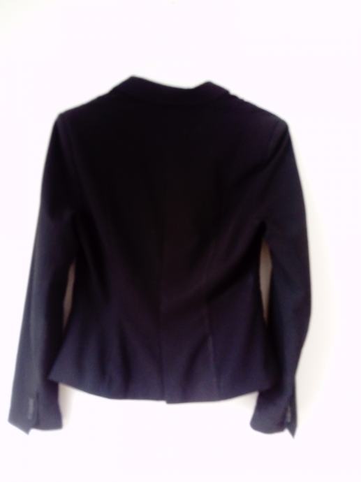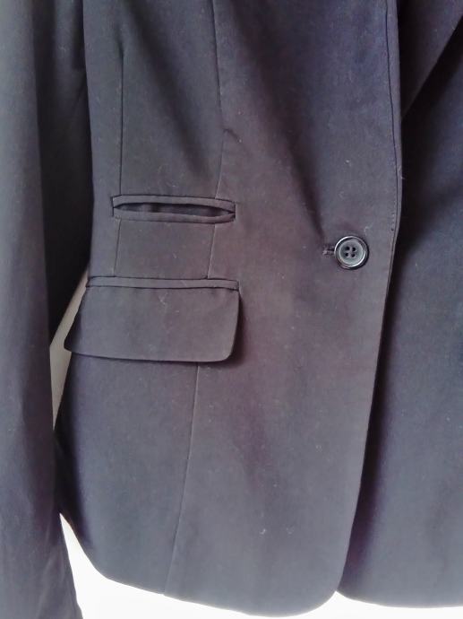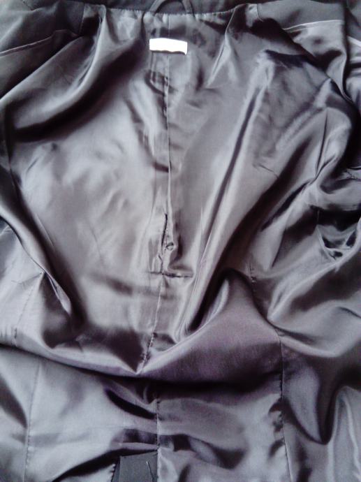 Crni sako 38 PIMKIE, bez mana, strukiran, ugodan, sa dva štosna džepa sprijeda, pune crne boje, slikano sa blicom da bi mogli vidjeti detaljnije.