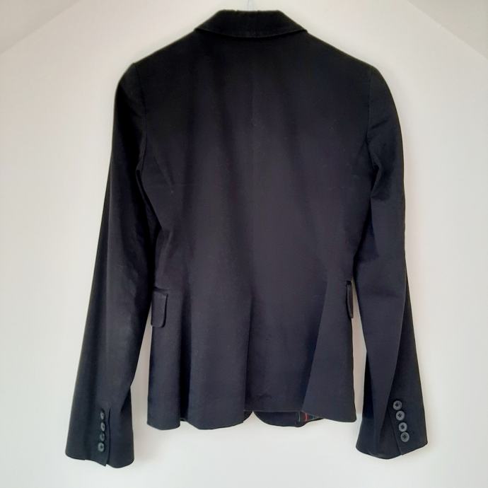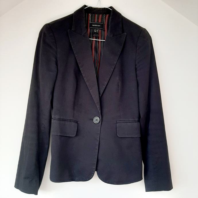 Crni strukirani sako 36 MANGO kraći model, besprijekoran nošen par puta