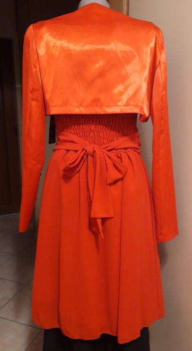 Predivan crveni komplet,(boja ljepša crvena uživo) lagani, udoban ne gužva se, mekani, haljina podstavljena vel.S/M obim prsa 85,