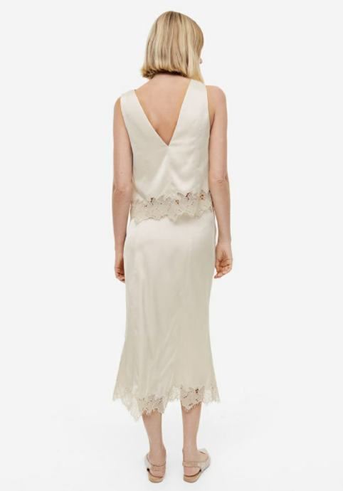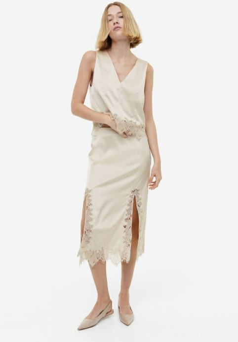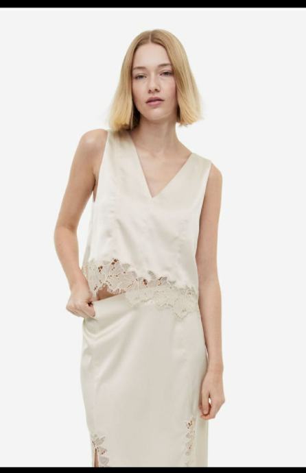 Prodajem prekrasan cipkani H&M kostim, novi sa etiketama. Top je velicine L, suknja velicina 40.