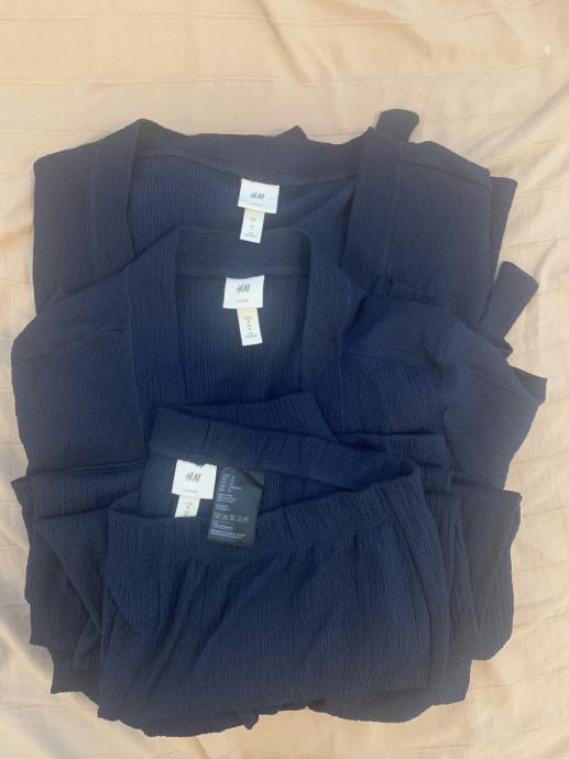 HM tamno plavi komplet, hlače veličina M i 2 gornja dijela veličina M i L.