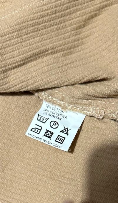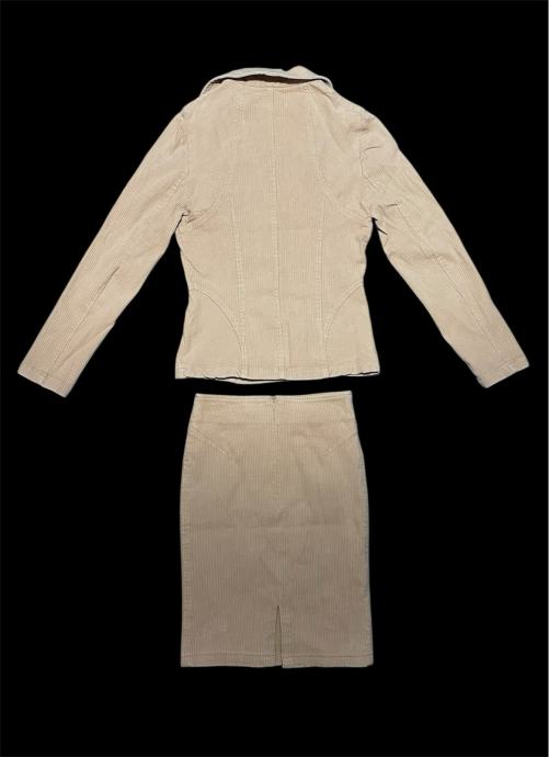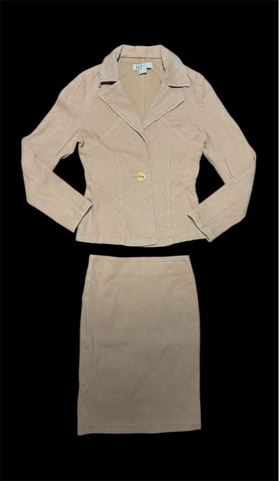 Image Haddad boutique komplet sako i suknja vel 34, XS, kao novo. Poslovni komplet, strukiran sako i uska suknja do koljena. Pamuk/elastin, materijal je rebrasti poput samta, lijepa svjetlija lješnjak smedja boja, suknja se kopča odostraga na patent zatvarač. Obučeno možda 2 puta, kao novo.
