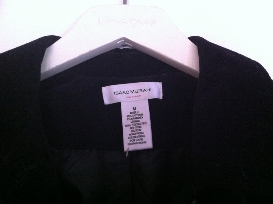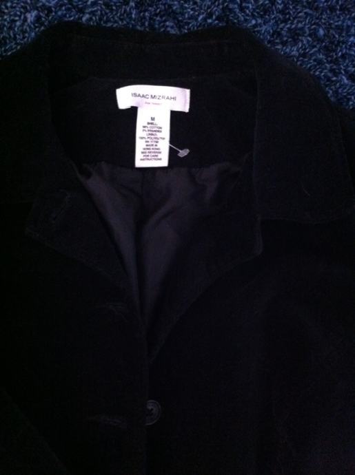 saac Mizrahi for Target collection, nenošen, velik mi je (ja sam small/medium). Kapri rukavi dužina 46cm, dužina sakoa 53cm, širina u struku od ruba do ruba 43cm, širina ramena 40cm. Piše medium, ali moze i manji large. Materijal je deblji pliš.