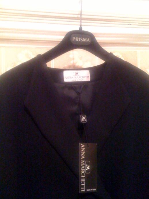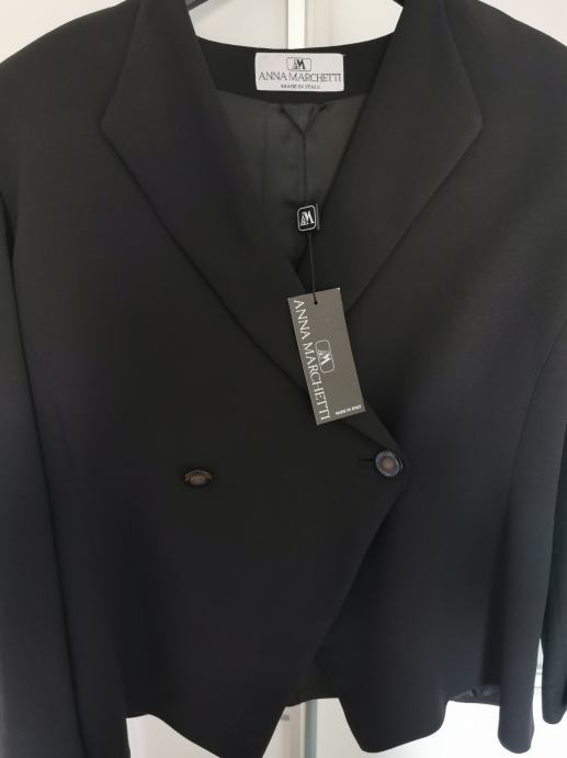 Kostim sa suknjom 'Anna Marchetti', br. 48 (tal. 52), crni, novi sa etiketama, dugi rukav, kopčanje s dva gumba. Jako elegantan i profinjen. U Italiji plaćen 270 Eur, prodajem za 70€.