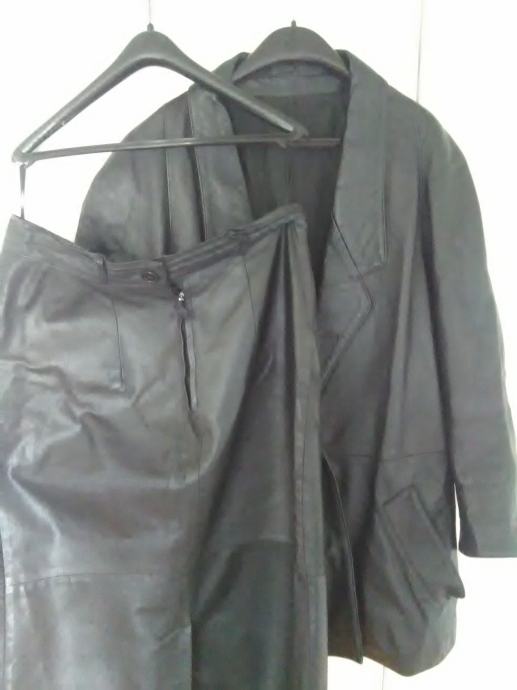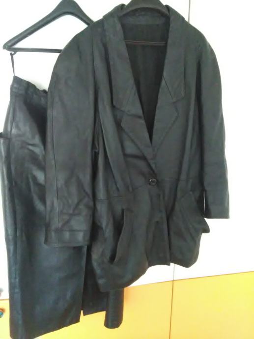sako i suknja, crna koža, dobro očuvano - prirodna koža, podstava viskoza
