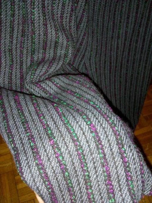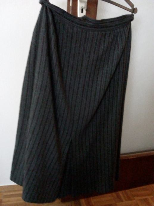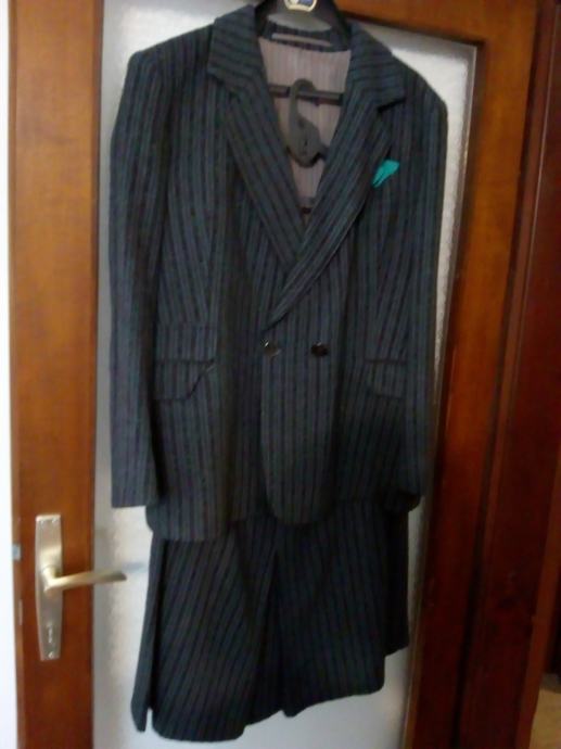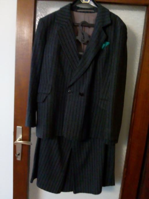 Povoljno prodajem kvalitetan štofani kostim (suknju i sako) na prugice što se može detaljnije vidjeti na slikama.