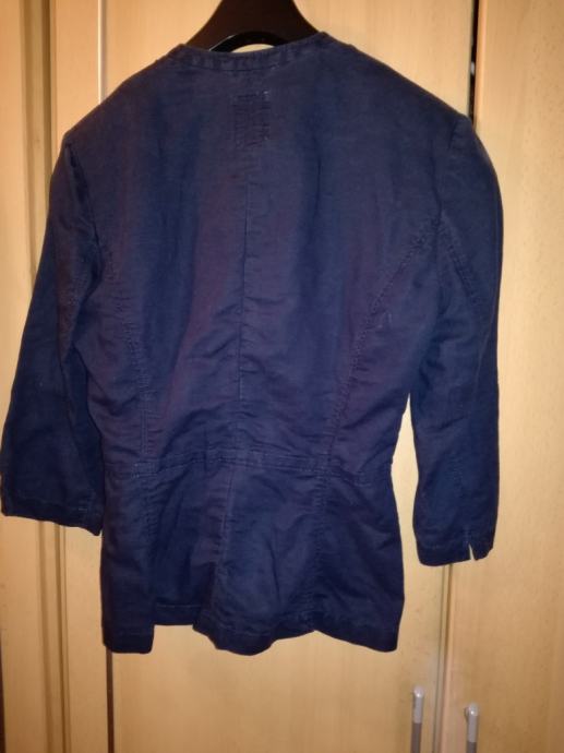 Sako je nosen ali ocuvan, lanen, sa "jastucicima" na ramenima, strukiran, na kopcanje