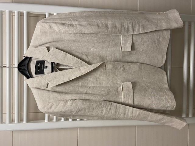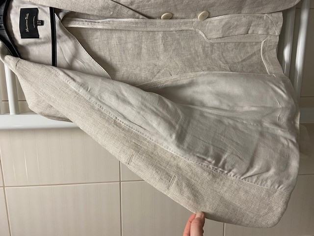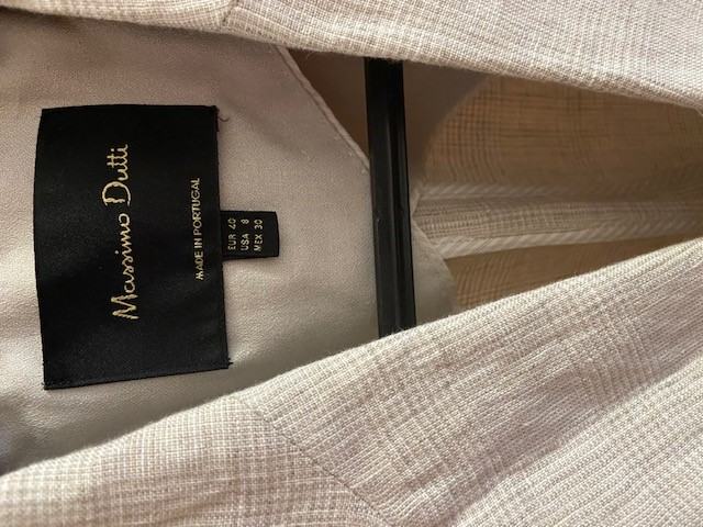 Massimo Dutti laneni sako broj 40, krem boje sa sitnim uzorkom, podstavljen, 100% lan. Cijena 45,00 eura