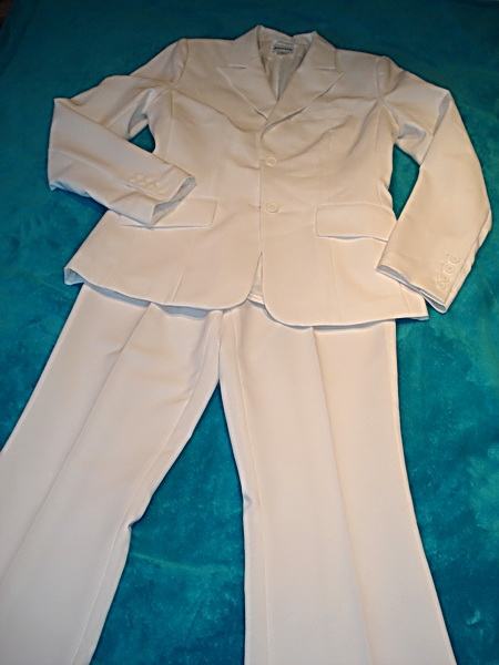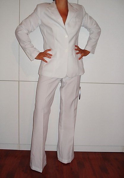 Melrose bijelo žensko odijelo sa laganim trapez hlačama.