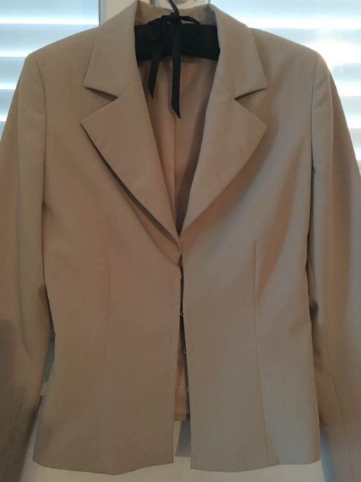 MOTIVI made in Italy...sako jakna boje šampanjca..bež nude..vrlo efektna elegantna,ne gužva se..pogodna i za elegantne večernje kombinacije kao i dnevne casual..nenošena..saten podstava..mix viskoza elastin....zanimljivo kopčanje srebrenim spojnicama..blago strukirana ...vel36-38...S/M