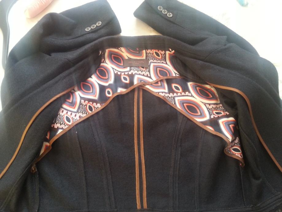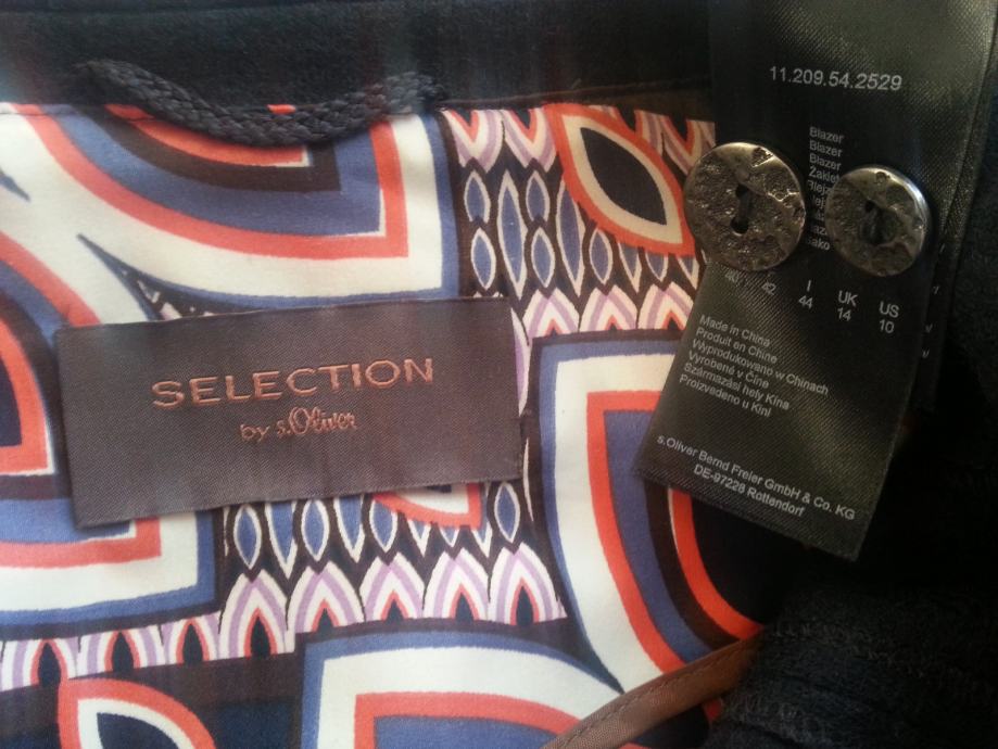Plavi sako jakna Selection by S.OLIVER NOVO, njihova posebna linija odjeće sa profinjenim i klasičnim elegantim komadima, matrijal je deblji pa može poslužiti i kao prijelazna jaknica za jesen/proljeće, predivan, ukoliko ste imali priliku kupiti njihovu odjeću posebno gornju klasu linije Selection onda ste se sami uvjerili o kakvoj izradi i kvaliteti je riječ i zašto je to dugoročno odlična investicija vrijedna svake kune, veličina 38/40.