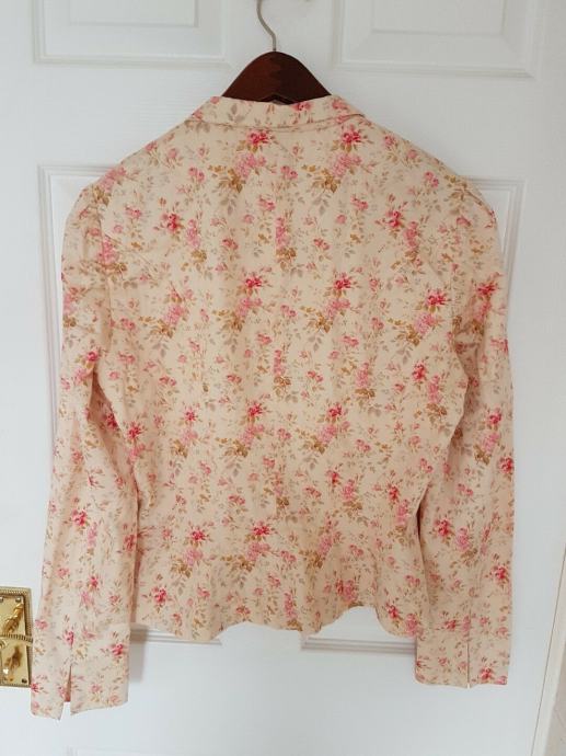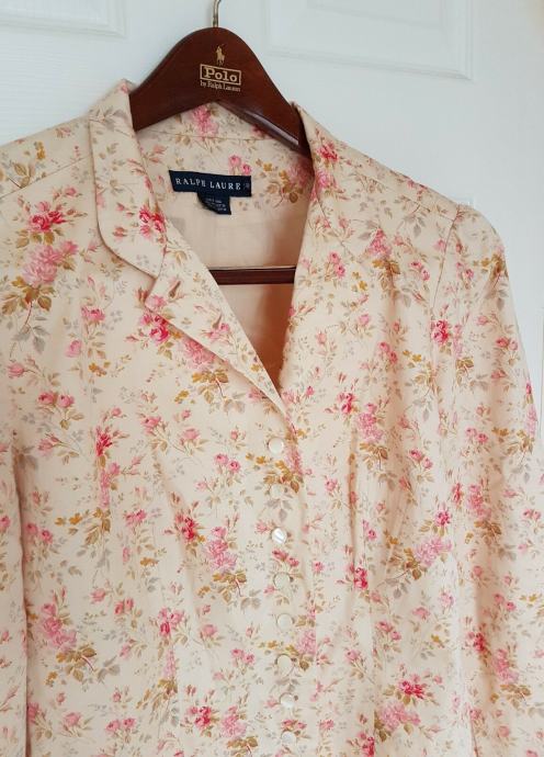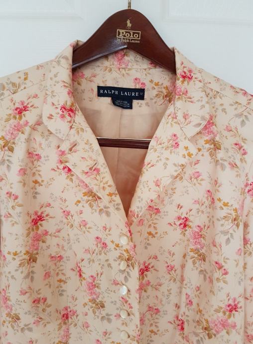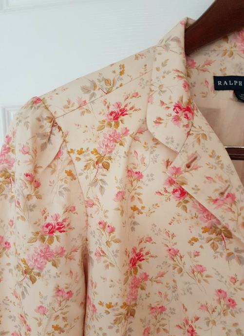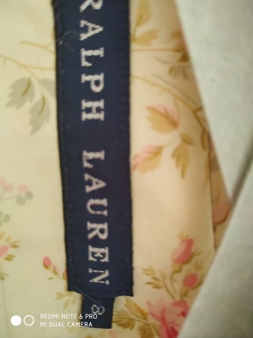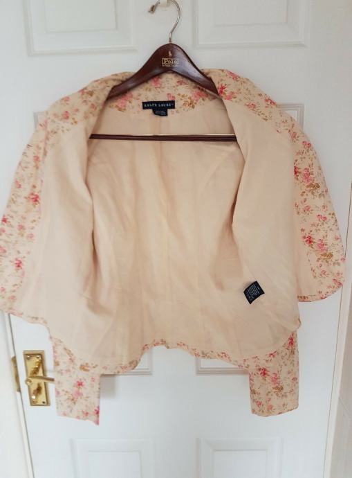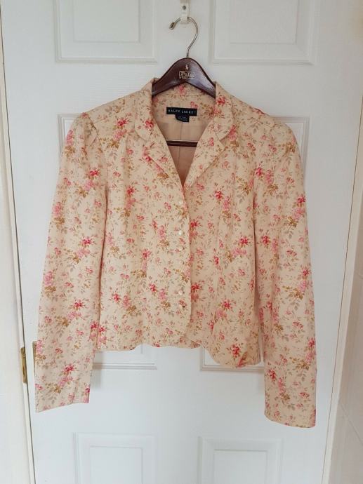 Prodajem gotovo NOVI (nošen samo jednu večer na svadbi) Ralph Lauren blazer! Nakon nošenja kemijski očišćen i u ormaru strpljivo čeka novu vlasnicu! Pomalo retro, šik RALPH LAUREN blazer, cvijetnog funky dezena s gumbima koji imaju biserni efekt. Blazer je podstavljen pamučnom podstavom.