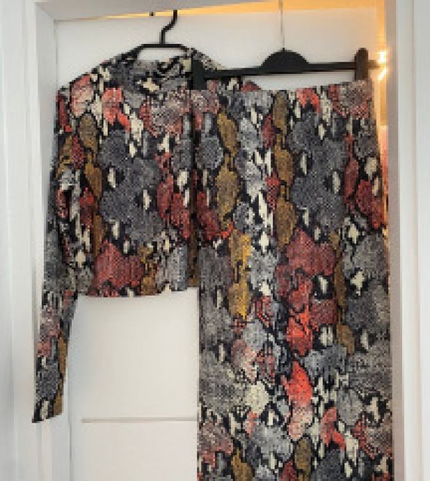 Predivan ,novi Reserved komplet, suknja i majica,šareni zmijski uzorak!majica vel M,suknja S,ali realno 38 vel,nema razlike..niti 1 nosen, samo skinuta etiketa.