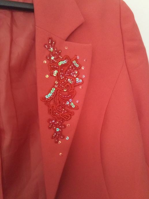 na reveru ima ukras koji je ako lijep u živo ai može se i skinuti taj ukras jer je nasiveno
